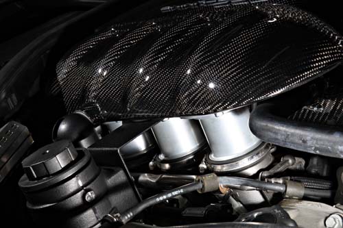 | ESS Tuning VT2-625的所有固定座都是採用原廠孔位,不需要任何的破壞加工即可輕鬆安裝,復原後也沒有絲毫痕跡。而為了更能提升整體效率,碳纖維集氣箱下安裝上更長的六喉直噴的直通進氣歧管,使得高轉速時的輸出有著強烈且持續的實力。 |