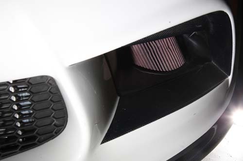 | K&N香菇頭被藏在車頭的氣壩內,一方面因為引擎室的空間不足,另一方面則是希望換取更低的進氣溫度。不過這部分筆者倒認為以台灣的環境而言,或許還是將香菇頭換個位置較為妥當。 |