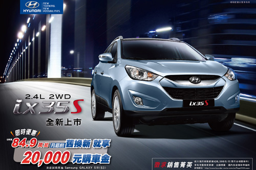 總代理南陽實業針對旗下最受歡迎的國產SUV及都會掀背車款,在光輝十月好禮再加碼。國產SUV車款方面,推出了ix35S限時優惠案,原價84.9萬起,在本月(10月) 底前舊換新,即可享20,000購車金。史上最強的國產動能旗艦SANTA FE eVGT本月(10月)底前領牌交車,可享70萬零利率,再享「五年不限里程延長保固」。