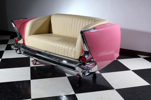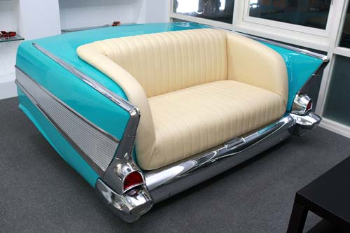 | 為了拓展市場,合擎也利用了自家生產的零件衍伸出了許多產品,例如這些利用車尾打造的沙發座椅,相當適合主題餐廳或PUB等來使用。 |