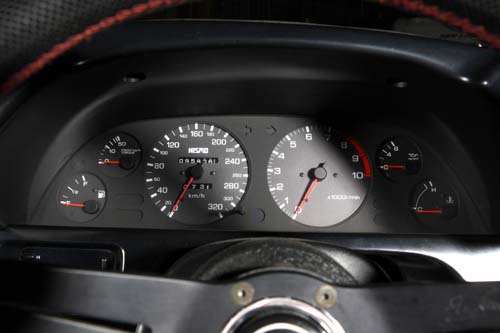 | 仔細看看時速錶與轉速錶,錶底320km/h與10000rpm看起來相當誇張,而R32 GT-R確實是有實力挑戰極限,而且還是20年前設計的老車款! |