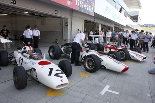 這場盛會從賽車場外就有許多展示安排,舉凡像是曾在鈴鹿締造輝煌戰果的各級距經典賽車展示、車廠御用改裝展示、主舞台F1明星車手脫口秀、零配件展售與日本汽車史過去五十年間的各廠牌經典老車展示等,就已讓人大大滿足沉浸在Motorsports賽車運動的樂趣當中!場內表演活動肯定更是精彩!首先,遠從Twin Ring Motegi賽場鄰近Honda Collection Hall運來做動態走行展示的幾部1960年代F1賽車,其經過專業技師群花費無數心血照顧整理後的車況幾乎新到讓人瞠目結舌!近距離觀看引擎室周遭幾乎沒有一絲髒汙油氣,連排氣管尾出都乾淨到發亮!尤其當筆者站在Pit前感受到車輛發動後的巨幅聲響後,心中更感動到幾乎要掉下眼淚…