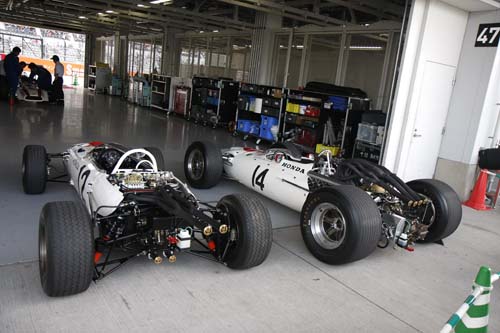 看看這兩部14號1967 Honda RA300(V12 3000c.c.)與5號1968 Honda RA301(V12 3000c.c.)叱吒1960年代F1賽場的賽車是不是保養維護跟新的一樣!
