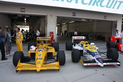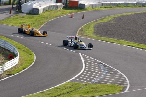 光是聽到這些老F1賽車發動就已讓人感動,再看到幾位日本賽車界「國寶級」的車手如高橋國光、中山島梧、星野一義、宮城光等人,穿著全套裝備坐進賽車駛入賽道,尤其當車輛經過大直線前奔馳而過全油門與入彎前的退檔聲浪,更是讓人為之振奮,筆者甚至心想當自己七十歲時,是否還能有這般身手與膽識呢…大會同時也安排了中山島梧vs星野一義的F1夢幻對決:由兩人分別駕駛1988年式Lotus 100T與Williams FW11賽車(1986年N.Mansell所駕駛)在鈴鹿賽道內做短距離的衝刺加速追逐表演賽;另外還找來現役日本方程式與SuperGT500參賽車手伊澤拓也(26歲)與塚越廣大(24歲)二人,分別駕駛曾由已故車神洗拿所駕駛締造輝煌戰果的麥拉倫1988 MP4/4與1989 MP4/5來進行追走表演。