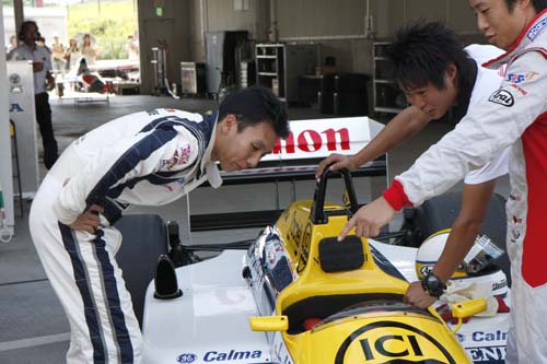 本場受邀前來表演的幾位日本現役SuperGT與Formula Nippon車手小暮卓史(左)、塚越廣大與伊澤拓也對Williams FW11 F1經典也是感到好奇不已!
