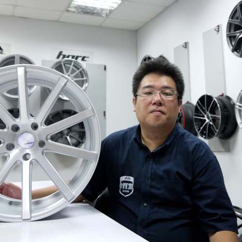 | 壹條興業的潘均維先生說:專為Audi、M.Benz設計的高級車款大尺寸輪圈,除了應有的特別外型,更引人目光的是,其高穩定度的車胎走行表現。 |