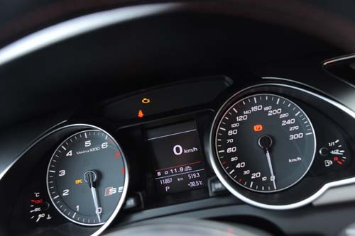 | 錶底高達300km/h的速度錶暗示著此車不凡的性能,轉速錶內的S5則提醒駕駛人腳下可驅策的巨大動力。 |