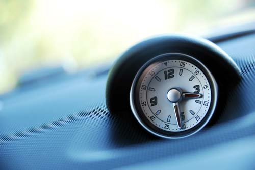 | 位於中控檯頂端的指針式小時鐘是由IWC製作,當然是選用配備。 |