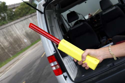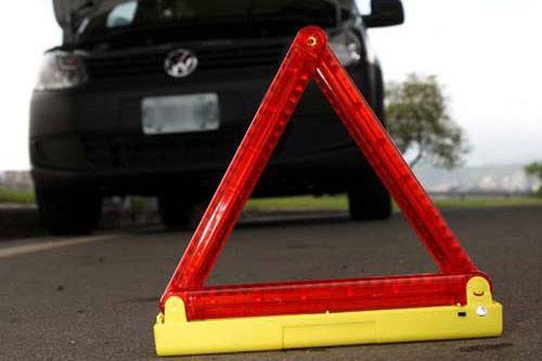 | 轉折收納之後,原本警示後方車輛閃避的LED故障指示燈,瞬間變成指揮交通棒,對於行車安全也是另種用途! |
