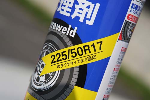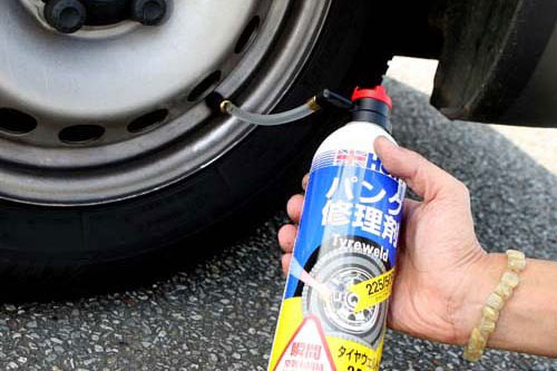 相較於印象中老式的補胎方式,接下來介紹更為便利省時、劃時代的新科技產品-『輪胎修補劑』,產品如其名,當相同遇上輪胎刺上利物時,先將利物拔除,將輪胎內部空氣全部放除,充分搖晃修補劑後,將修補劑噴管接頭鎖上輪胎氣嘴,按壓修補劑的噴頭按鈕,這時補胎膠劑及高壓空氣會一併衝入輪胎內,確認輪胎胎壓已補足後,稍加行駛一段距離後,灌入輪胎內部的膠劑會隨著滾動作用,遍佈輪胎內部,也會將原先破損的地方填補蓋過,這時只要再次確認沒有再次發生洩氣現象,就算補胎完成囉!