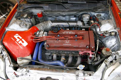 | 自從退出國際賽全力投入國內賽事後,這輛EK便換上B20B的引擎本體,加上四喉直噴的套件後動力高達340hp的水準。 |