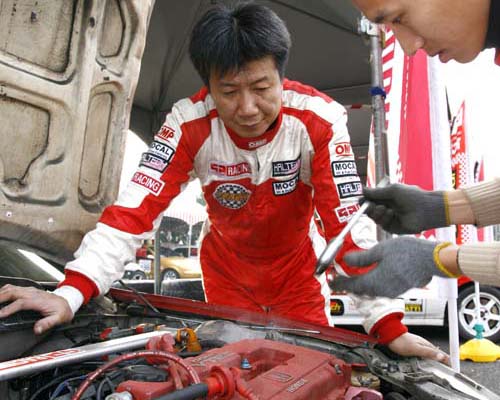 | 為了讓動力保持水準,二哥每二、三場賽事便會重新整理一次引擎,在賽事中也隨時注意車輛的狀況以爭取更好的成績。 |