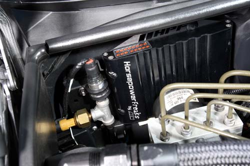| 面對超過400hp以上的動力提升,原廠供油系統早已不敷使用,HPF則是以750c.c.x6噴油嘴及高流量泵浦來輔助。 |