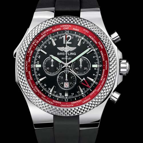 | BREITLING Bentley GMT V8 不鏽鋼錶殼,時間指示,日期窗,計時碼錶功能,24小時制第二時區指示,Cal.47B自動上鍊機芯,C.O.S.C.天文台認證,限量250只,參考價NT$388,900 |