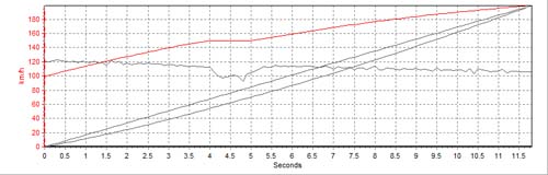 由於TD05渦輪的輸出特性較為均衡,雖然達到全增壓的轉速比K04要稍高一點,但隨後輸出的力量比起K04而言不但大且線性,不過瞬間的力量卻沒有GT2871來的那麼猛烈,而在100~200km/h測試當中,搭載BCS TD05套件的這輛車最終跑出12秒的成績,以五代而言已經算相當快的表現了。