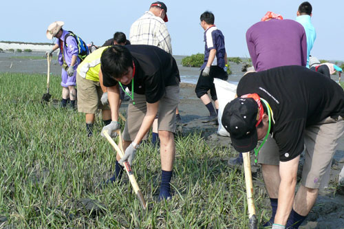 彰化大城濕地,近年來發現被強勢的外來種植物—互花米草入侵,因其在潮間帶的生存競爭力極具優勢且繁殖迅速,造成台灣原生種的植物如紅樹林植物面臨生存威脅;加上其強勁的地下莖盤根錯節,壓縮了潮間帶底棲生物的生存空間,因而造成種類及數量的下降,改變了當地的食物鏈結構,進而也降低生物的多樣性;太古汽車的同仁及眷屬奮力地拿起圓鍬,在泥濘的地上向下挖斷互花米草的地下莖並拔除,唯有如此斬草除根,才能夠根絕它的生長;最後在大家的努力下,總共清除了281公斤的互花米草,希望透過大家這次的努力,能減緩其在當地蔓延的速度,並早日達成全面根除的目標。