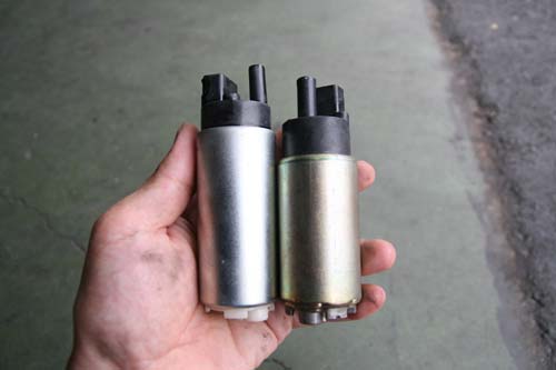 若將汽油比做人體的血液的話,汽油泵浦的功能就向心臟,負責將油桶內之汽油,加壓輸送至供油管路內,以待噴油嘴噴出,如果噴油嘴沒有將所有泵出的汽油用完的話,剩下的汽油就會回到油箱中,不過如果引擎經過大幅度改裝,並加大噴油嘴的話,原廠泵浦打出去的汽油可能會不夠用,反應在燃油壓力上,就是全負荷或全增壓時壓力不斷下降,嚴重時可能會因供油不足而爆引擎,此時就需透過更換吞吐量更大的泵浦來因應,泵浦大小對照的單位為每小時泵出幾公升的汽油,也就是L/H,原廠NA車的泵浦大約為100L/H,渦輪車則為180L/H,至於渦輪改裝車最常用到則為255L/H。