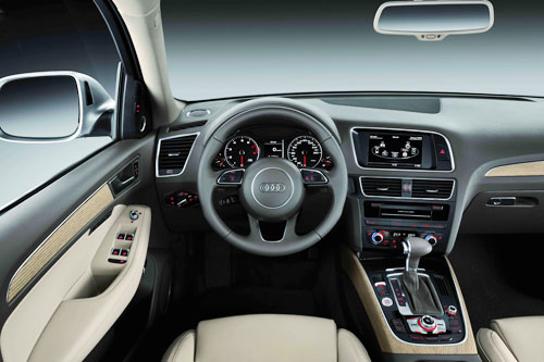全新Audi Q5不僅僅只有外觀造型更為精進,車室內裝亦啟動進化升級工程,在Audi原廠團隊的巧思改造下,煥然一新的內裝氛圍將豪華運動休旅車應有的元素完全鋪陳其中,首先以極為精巧細膩的手法展現Audi匠心獨具的內裝設計概念,中控台儀錶上的流暢線條在視覺上營造出具有向前奔馳的性能風格,而各項儀錶顯示和控制按鍵具有完美的邏輯性排列之外,配上全新內裝飾板與配色,以及細部按鍵升級為鍍鉻部品和控制元件全面採用鋁合金塗裝修飾後,整體質感的提升幅度倍增,其他如四幅式多功能方向盤(可選用三幅式樣多功能方向盤)、新款造型排檔頭和置杯架設計、車門內飾板採用與座椅相同配色之材質(真皮/織布)、鑲有全新設計鍍鉻飾環之儀錶對應黑底白刻度與新指針樣式,突顯內裝的視覺美學與設計感之餘,更強調駕駛者在操作時的就手度與實用性。
