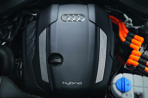 全新Audi Q5 hybrid quattro油電複合動力休旅車同步提供五種hybrid系統作動模式,能以純電力(EV)或2.0 TFS引擎獨立運作,而hybrid的複合動力模式除了作為綜效動力輸出之外,也作為額外動力增壓(Boosting)和電池蓄電力回復(Recuperation)共三種模式。全新Audi Q5 hybrid的電動馬達由一具交流永磁同步碼達所伺服,其所輸出的交流電力最大功率達54hp/21.4kgm,系統並能在減速時對電池進行充電,保持電池的蓄電力,冷卻系統則與2.0 TFSI引擎整合共用,至於驅動馬達的電力由置於車後行李廂下方的防撞區域中的鋰(Lithium-ion)電池系統所供應,這組精巧的輕量化電池系統由72顆鋰電池所組成,於266伏特時能輸出最大功率54hp(40KW),耗電量為1.3kWh,總重36.7kg,體積僅26L,讓全新Audi Q5 hybrid quattro仍保有460公升的標準行李廂容積,搭配可傾倒分離式後座椅背的靈活調整功能,更可將容積擴充至1480公升之譜。