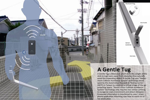 隨著科技的進步,視障人士的導盲杖除了觸感的回饋,是否能有更多的發展空間?來幫助他們更了解道路環境。財團法人車輛研究測試中心(簡稱車輛中心、ARTC)透過科專技術成果與東海大學工業設計團隊設計「拉一把 A Gentle Tug」,獲得2013德國iF產品設計獎,不僅讓科研技術更貼近人心,也幫視障人士拉一把,這是車輛中心創新技術連二年獲得iF肯定,在歲末年終標上完美印記。