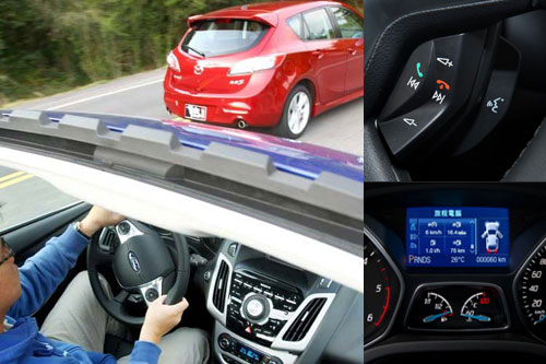 之前提到三代Focus在座椅著座點和包覆性的改善,的確讓駕駛者在各種地形上獲得理想的乘坐穩定性,相較於座椅較為平整且包覆性較差的Mazda3來說是一項利多,不過由於儀錶、中控檯等處在縱深上更為接近正副駕駛人的位置,因而產生不少的壓迫感,但也因為如此,右手在接觸各項控制介面上的按鈕可就變得更為容易。相較之下,Mazda3的電裝品顯得較為寒酸,整體設計、功能和用料差了一大截,就Focus 2.0五門柴油和Mazda3 2.5S以同樣的價格條件來說,全新Focus顯然在內裝各項配備上擁有更大的優勢。