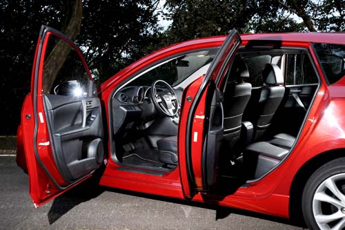 在空間評比上,Mazda3 2.5S車身雖長了147mm,但在軸距上卻不相上下,不過整體車艙空間安排卻帶來與Focus 2.0五門不同的特性;雖然Focus竭盡所能的靈活運用空間,但如同前述,Focus在前車艙的中控檯上塞了太多配備而造就龐大體積,讓體型較為高大的駕駛者感到不適,不過Focus在較長的車寬和車高上還是稍微彌補一點回來,著座點的降低加上座椅至頂篷間最高長達一米的高度,即便是身高185cm以上的人乘坐也能獲得充足的頭部空間,而後方乘客在軸距較長和車高較高的條件下也能夠享受到較長的膝部長度以及較不具壓迫感的頭部空間。可是就總體而言,Mazda3 2.5S的前車艙空間還是較為寬廣,後座較長的椅座面積所帶來的舒適感也稍優於Focus 2.0五門。