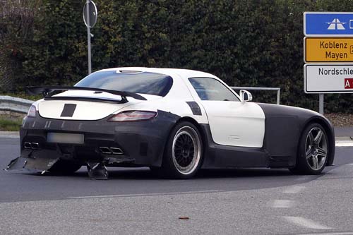 嫌SLS太慢的人有福了!強勁的特別版「Black Series」準備隆重出場。SLS車可說是M.Benz最特別的一部跑車,門很特別,它的車身比例也與現在常見的超級跑車大有不同,它的引擎聲音既復古又前衛,有自己的個性,為AMG之音立下了一個標準。當然了,超跑最重要的操控性也是可圈可點的,雖然有些人認為只有中置引擎跑車才是真正的超級跑車,但在專業的車手手中,它的速度和樂趣完全是第一流,不少外國的專業媒體和試車員都把它列為最佳超跑之一。這部測試中的Black Series特別版本雖然覆蓋大量偽裝,但大家仍可以看出多出的一大堆進氣口,用來冷卻煞車之餘亦能夠增加汽車極限壓力,高速行車更穩、馬力更大,車身更輕自不在話下;而關於更加凶神惡煞的裝扮,Black Series特別版本從來沒有令車迷失望過。