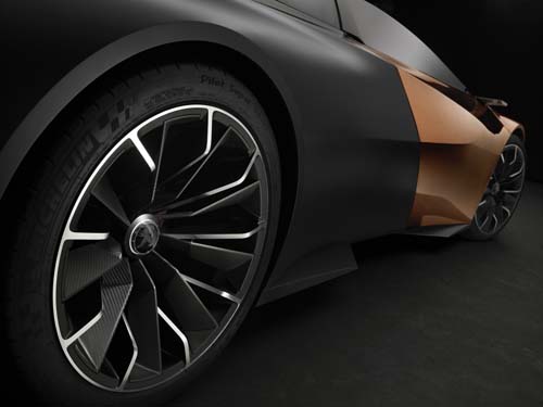 雖然缺少法國設計師應該擁有的出人意表創舉,Peugeot Onyx Concept卻選擇在車體與材質大做文章。這項創新車體工法是以十二張單片式碳纖維結構組成底盤,並大量使用銅材質與碳纖維,如此簡單高效率的設計概念讓Peugeot Onyx Concept呈現出1100kg輕量化重量。其中,採用碳纖維一點也不意外,有趣的是銅材質的運用,目前尚不清楚為何Peugeot激進嘗試汽車領域鮮少使用的材料,倒是官方說法相當耐人尋味:「銅金屬會隨著時間轉變為銅綠色……」,真不愧是法國人!讓人感到好奇的是使用時間久了,外觀車色會不會變成故宮博物館展示的青銅器?