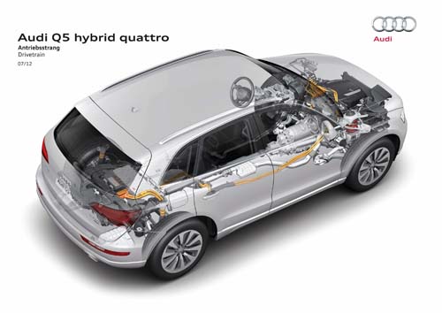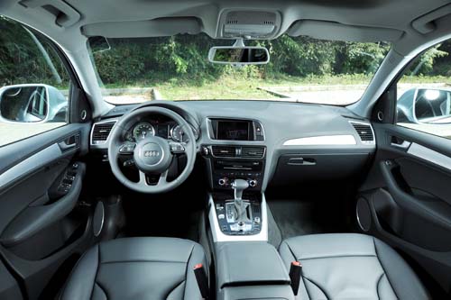 在內裝部分的變動幅度不大,基本架構維持原本的安排,不過在細節部分進行了較多的修改,例如換上了新型的方向盤與排檔桿,MMI也換上新一代的製品具備更多的功能,而由於Audi總會在Hybrid車款加上更多的配備,因此中文化的MMI與衛星導航裝置都成為配備清單中的項目;另外一項值得一提的則是,Q5 Hybrid把Bang & Olufsen音響列為標準配備。