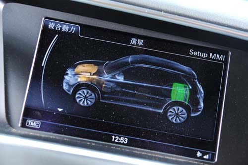 | 中文化的MMI多功能顯示幕當然也能顯示Hybrid系統的運作狀態。 |