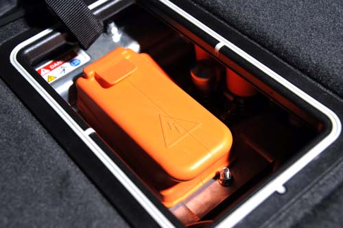 | 行李廂內的電池接頭,買家沒事可別碰它,留給專業人士處理就好。 |