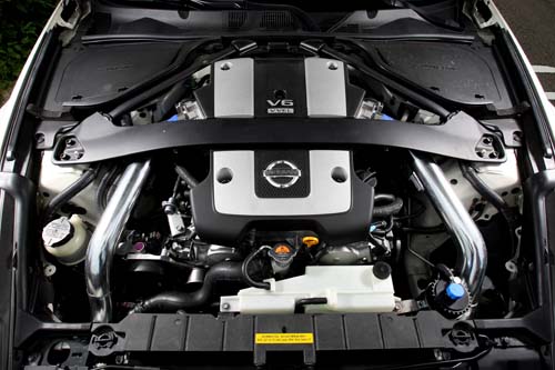 在所有現行日系車款當中,370Z絕對是一輛能夠與歐系跑車並駕齊驅的一款,這輛雙門Coupe不但外型搶眼、底盤設定優異,VQ37VHR還擁有336匹最大馬力與37.2kgm/5200rpm最大扭力峰值,如此的表現已經與997 Carrera非常接近,但兩者加價高達200多之譜,C/P值如此合理的日系跑車,難怪一推出便掀起搶購的熱潮。370Z除了六速手排的配置外,更提供了全新的七速手自排變速系統,此具由Infiniti與日本變速箱大廠Jatco共同開發的全新變速系統,七速的配置使其齒比分布更為綿密,在加速時的表現線性順暢,各檔位切換的頓挫亦不明顯,不只性能味十足,七檔的疏齒比設定對於乘坐舒適性與巡航低油耗的精進也大有助益,實際使用起來樂趣完全不輸給手排車款。