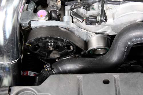 | 由於機械增壓器在下方,因此GTM套件特別將壓縮機位置外移,好讓皮帶能夠繞過去帶動增壓器運轉。 |