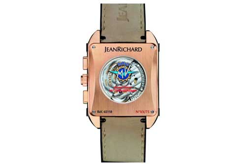 使用自動上鍊JR1000自製機芯、63石,振頻28,800次/小時,動力儲存達48小時以上,具有小三針、日期顯示、計時碼錶的功能,採用緞面方型派拉蒙錶殼,規格38×38mm,厚度13.64mm,口徑29×29毫米,內採立體玫瑰金阿拉伯數字,限量75只,有獨立編號。