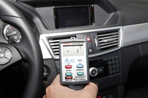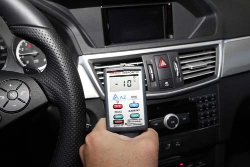 | T5動力晶片安裝於冷氣管路上,有效提升冷氣系統效能,實際測量出風口溫度明顯降低達9度。安裝前:負1度、安裝後:負10度 |