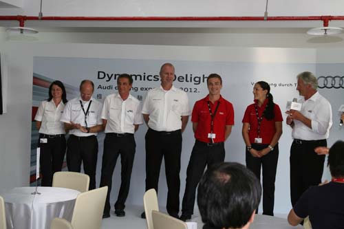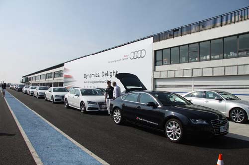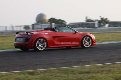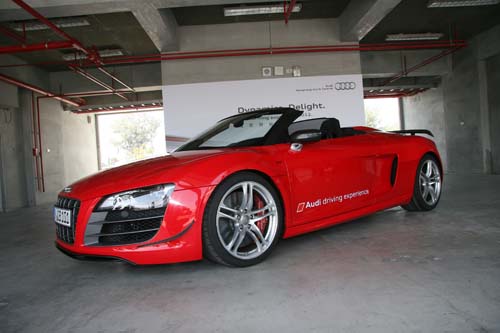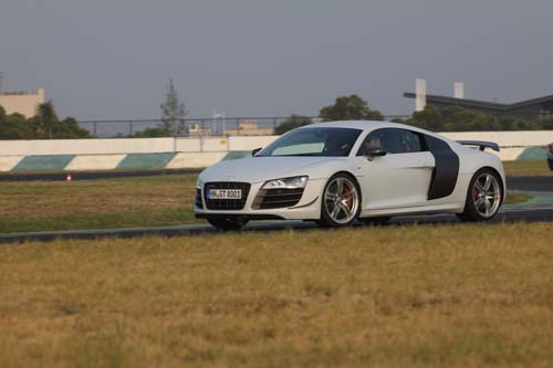 為了迎接來自亞洲包含越南、印尼、斯里蘭卡、汶萊與國內車主的參與,這次由Audi原廠全力支援的2012 Audi driving experience極限體驗營可說大手筆動員了旗下高性能車型,除了一頒A6、A7、A8與Q系列SUV作為基本操控的試乘車,最能夠展現Audi高性能實力S系列包含S6、S7、S8、TT RS與全球限量333部的R8 GT及R8 GT Spyder也同樣現身,而R8 GT Spyder更是首度在國內正式亮相。由於R8 GT及R8 GT Spyder的車身是以Audi Ultra輕量化車體技術所打造,包含聚酯碳纖維(CFRP)、ASF全鋁合金車體以及聚酯玻璃纖維(GFRP)等輕量化材質,因此車體重量較一般5.2FSI車型減輕85~100kg,而重新調校後的5.2升V10 FSI缸內直噴引擎則是能發揮出560hp/8000rpm與55.1kgm/6500rpm,配上競技用乾式油底殼設計、六速R-Tronic變速箱與quattro系統,輕鬆展現出頂級超跑所應有的賽道性能。