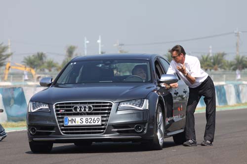 不過由於車輛性能過於強悍,加上基於車輛與學員的安全考量,因此包含R8 GT、R8 GT Spyder、TT RS與S8的單圈賽道體驗僅能由原廠派出的專業教練駕駛試乘體驗,在專業教練操控技巧帶領的體驗下,雖然少了方向盤所回饋的車輛及路面反應,但是高性能與智慧型恆時四輪傳動的完美結合確實讓在場學員能夠牢牢記住。然而在正式動態體驗之前,廠方為了能夠提供與會學員有更為正確的操控技巧與知識,除了特別介紹由德國原廠所派出的五位指導教練與負責課程,其中包含最基本而重要的駕駛坐姿、方向盤掌握與路線觀念等也都有極為清楚的解說,畢竟再安全的車輛只要駕駛觀念不正確,一切的高性能輸出也都只是枉然。