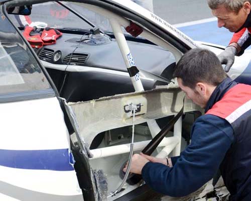 | 輕量化的工程還包括車門在內,即便FRP材質在擦碰時損壞,但車內的防滾架依然可以保護駕駛的安全。 |