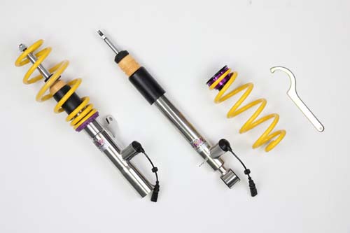 KW避震器目前所研發的專用彈簧與避震器組,採用所謂「Inox line」的不鏽鋼製成,能確保極高的品質與耐用度,加上永久如新的外層處理,完美保護筒身使其不受侵蝕,而特殊設計的螺紋更完全簡化簧圈支架的調整,同時依照阻尼軟硬與簧圈彈性係數,每一款KW避震器組都擁有前後獨立筒身可調功能,可將車高降低3.5~6.5公分,如此具有彈性的調整範圍是為了達成最理想的懸吊調校。至於產品分類部分,KW避震器組有一系列的款式供玩家選擇,共有街道舒適版、街道運動版Variant 1、2、3、Clubsport Kit賽道版及Competition競技版與最新的DDC、HLS版等8款。