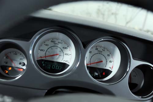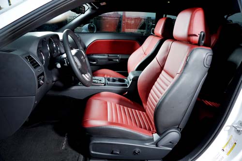 至於內裝設計,則同樣維持以往簡單樸實的調性,一字排開的四圓儀錶乃延續初代車款的風格,不過卻以反白底搭配紅色指針與刻度來強化性能氣息;而方正造型的中控檯與排檔座則展現出剛硬的強悍味,此外,此特仕車型換上了造型與質感兼具的Mopar排檔頭,並且搭配紅/黑雙色調的真皮跑式座椅,更加強化了車艙的熱血程度。在配備上則加選了許多項目讓車艙看起來相當豪華,包括多功能方向盤、方向盤換檔撥片、恆溫空調、雙前座加熱功能、液晶旅程電腦、CD影音系統及藍牙通訊系統等。至於安全配備上也相當齊全,ABS+EBD+BAS煞車系統、ESC車身動態穩定控制系統、雙前座正面/側邊氣囊以及側邊簾式氣囊等皆俱全。