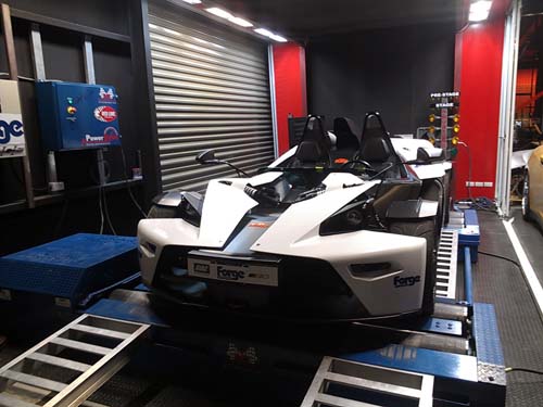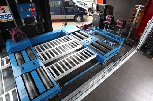 此外,該馬力機還可提供「輪上負載」的功能,也就是施加一個滾動阻力於測試滾輪上,讓輪胎轉動起來是有阻力的,以模擬車頭撞風的環境,才能真正符合實際的行車狀況,而該負載的最大值可到625 hp馬力,足以應付多數市售改裝車。而過去馬力機測試時,最常被人詬病的人為操作誤差,導致馬力機測試數據不準確的問題,在Mustang Dynamometer MD AWD-150上也不用擔心,除測試環境的溫度與溼度,都是由電腦自行取樣,免除人為操作的可能性外,各項誤差的補正多數也都是由電腦自行運作進行,因此只要馬力機日後定期保養校正的話,測試數據的誤差原則上是不需擔心的。除了上述功能外,該馬力機還可在上面進行各種加速測試,不論是0~100km/h、100~200km/h或0~400M的加速測試,一樣可在這部馬力機上執行。至於這部馬力機的測試極限為何呢?據原廠資料顯示,二驅/四驅車的測試極限分別為1200/2000hp的極限,最高速可到280km/h的最高車速限制,因此不怕您拉,只怕您不敢來拉!?