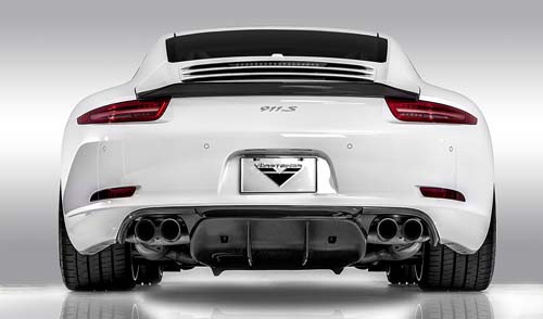 針對全新Porsche 991 Carrera車型,擅長打造更具性能空力外觀的Vorsteiner推出V-GT套件以提高車輛的性能表現,首先車頭方面,在原廠保桿中替換上以碳纖維材質的下擾流版,不僅能夠降低重量負擔,藉由車頭撞風的效能還可以導入冷空氣以利煞車系統進行冷卻。配合外觀全面化的氣動外型,Vorsteiner車身側裙進一步擴展下壓力同時也彌補車身曲線與線條。不過最受人矚目的還是這套後下分流器為V-GT重要的設計元素之一,同樣採用碳纖維材質不僅可直接對應原廠塑料件,而有效至車底下方延伸的分流器能夠在車頭額外增加下壓力同時,有效確保車尾在高速行駛時能夠牢牢吸附在地面上,而配合後行李箱蓋擾流版更有畫龍點睛的功效,完美融合空力性能與美學所需。