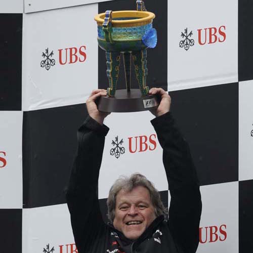 | Mercedes賽車副總N.Haug效力22年後退休;在他監管自家直屬廠隊的三年間,總算也有一次上頒獎台領取優勝獎盃的機會。 |