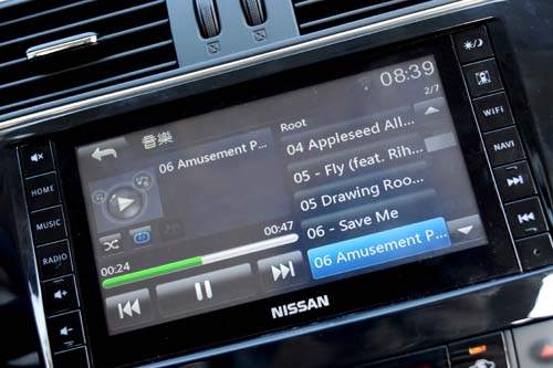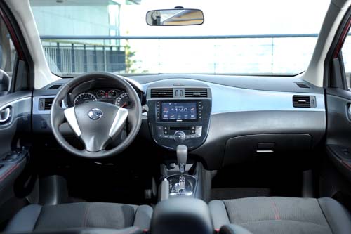 在配備部分,著實能夠感受到Tiida 1.6T所展現的誠意,除了儀錶板內可顯示檔位/平均油耗/續航里程/車外溫度等訊息的MID行車旅程顯示幕外,車內最亮眼的配備就是稱之為Super-Media的超級多媒體資訊系統,透過7吋的觸控式全平面螢幕,可操作影音、衛星導航等系統功能,並且能藉由3G智慧型手機訊號與車機連結行動上網,同時也能提供交通資訊、旅遊生活等即時訊息,這對於時下喜愛3C電子產品的年輕人可說相當具有吸引力;另外,所標配的AVM環景影像行車輔助系統以及360度行車紀錄器等科技配備,也都是Tiida 1.6T的產品賣點,尤其在安全配備上更不馬虎,包括ABS+EBD+BAS+BOS煞車系統、雙前座氣囊、雙前座側邊氣囊以及VDC車輛動態穩定控制系統等皆在標配名單中,而這也不枉其達90.9萬元的新車售價。