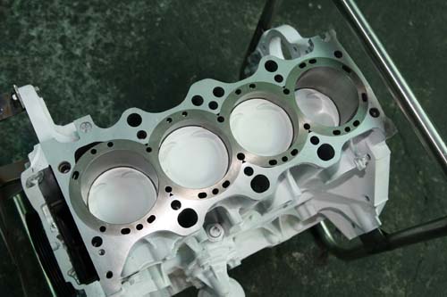 此外,有些半封閉式水道套件的孔洞(如美國Darton),甚至還有螺旋導流的設計,可藉由渦流的產生,提昇冷卻液的流速,大幅強化散熱效果。至於植入的方式,逼鋁錠最好要利用油壓檯,同時在對稱的位置一併逼入才行,如此才能盡可能維持缸套不變形,所以須有較高的技術才能完善進行,否則將會有活塞裝不下或高溫卡死的現象,因此鋁錠的厚度必須要慎重考量,而且材質軟硬的取捨更是一大難處,而另外一項更嚴重的,要是為了閃避汽缸頭水道的開孔,而無法對稱逼入的話,對強度會有影響,所以加裝半封閉式是一項因應措施,針對以上的問題都能夠解決,而且大多有半度斜差的設計,因此植入不需採取逼入的方式,頂多用塑膠榔頭輕輕敲打即可崁入,故較不會影響缸體強度,而在美國Turbo+NOS的Drag玩法,為了追求最佳強度,則是移植封閉式水道的強化缸套,此為競技的玩法,這樣承受高馬力的效果卻是最佳的。