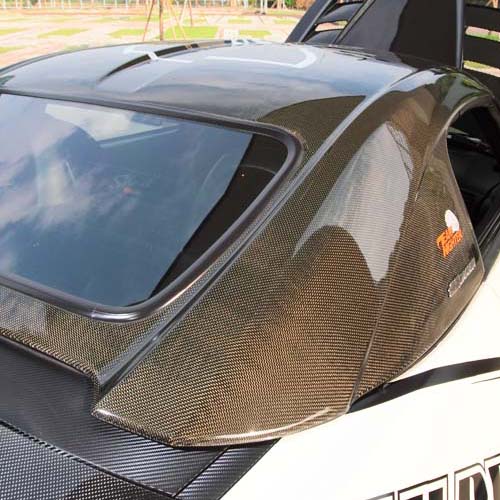 | 為兼具強度、輕量化與美觀效果,車頂與引擎蓋都採用碳纖維部品。 |