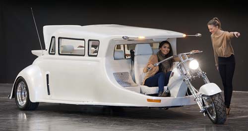這款名為Harley-Limo哈雷豪華禮車的怪車是結合摩托車、汽車及巴士的超級混種,製造者為移民澳洲的英國人Mac Swift;除了八人座真皮座椅外,大量紅柳木飾條、大型豪華禮車般奢華空間及室內空調設備正是賣點所在。為拉動龐大的車艙,Harley-Limo搭載的是5.7升V8 Chevy引擎,最大馬力達350匹。