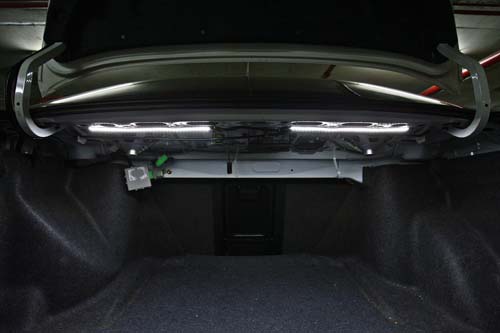 後保桿下方自行安裝LED燈具,跟隨其後行車,有相當警示效果,但是不少車友反應,這種加裝或安裝方式仍不合法零,恐有吃罰單的可能?