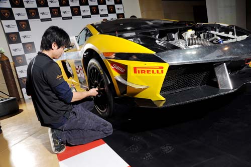 另外,Lamborghini為了能讓更多車迷體驗Super Trofeo賽事,於2013年除維持現有歐洲、亞洲地區挑戰賽之外,美國地區也將導入賽事,屆時賽事激烈程度精彩可期。Lamborghini Blancpain?Super Trofeo賽事中,以Lamborghini-Taipei車隊之名參賽的總代理嘉鎷興業,日前將38號參賽車輛運回台灣展示,觀察車身使用痕跡,不難看出賽事激烈程度。另外,更邀請參與賽事巡迴的專屬技師,於現場示範分秒必爭的賽事中,該如何進行車輛各項定位設定。