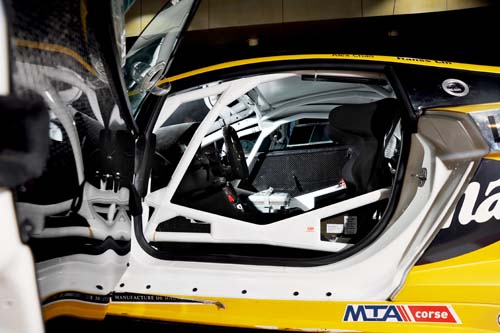| 內裝僅配置一張賽車捅椅及防滾籠板,其餘幾近全數拆空,並將擋風玻璃及車窗更換成聚酯纖維材質,使其車重達1300kg。 |